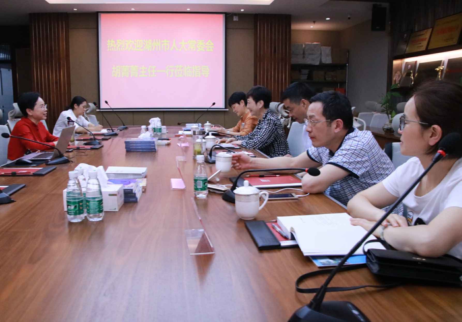 4月26日,湖州市人大常委会胡菁菁主任一行莅临米兰站·官方站网站入口-米兰(中国)总部考察指导,集团董事长、广东省湖州商会会长官金仙热情接待了胡主任一行。